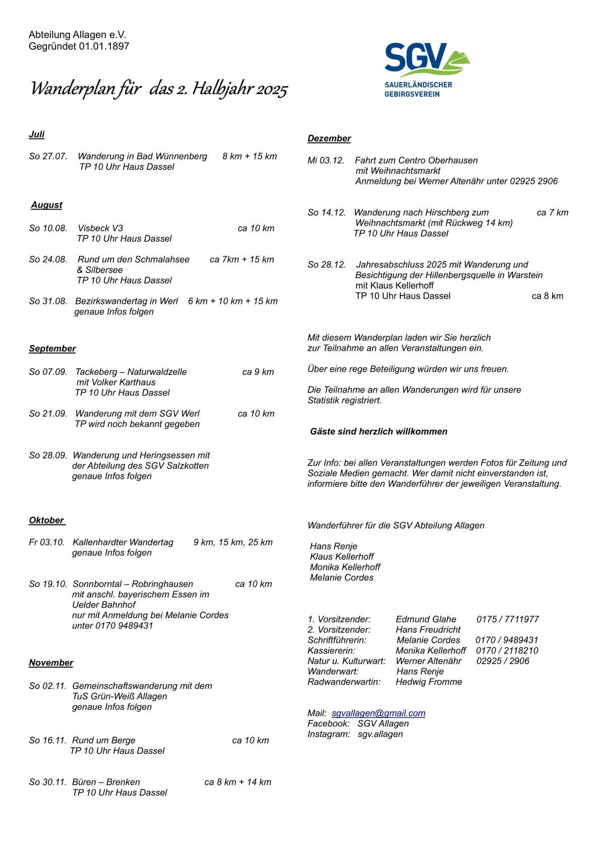 Wanderplan 2. Halbjahr 2025Folge uns auch auf Social Media
